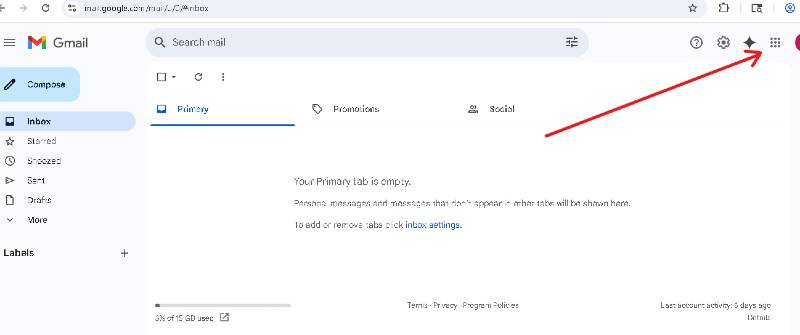 From the image below, Click on the Google Apps cluster in top right corner of your Google Account.